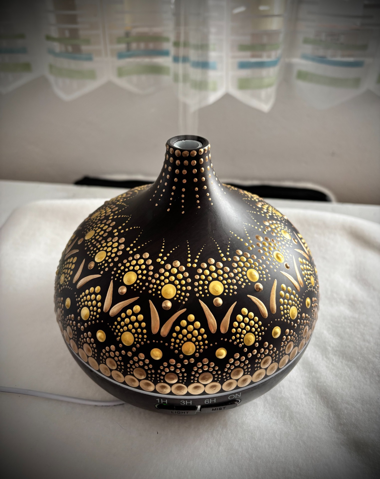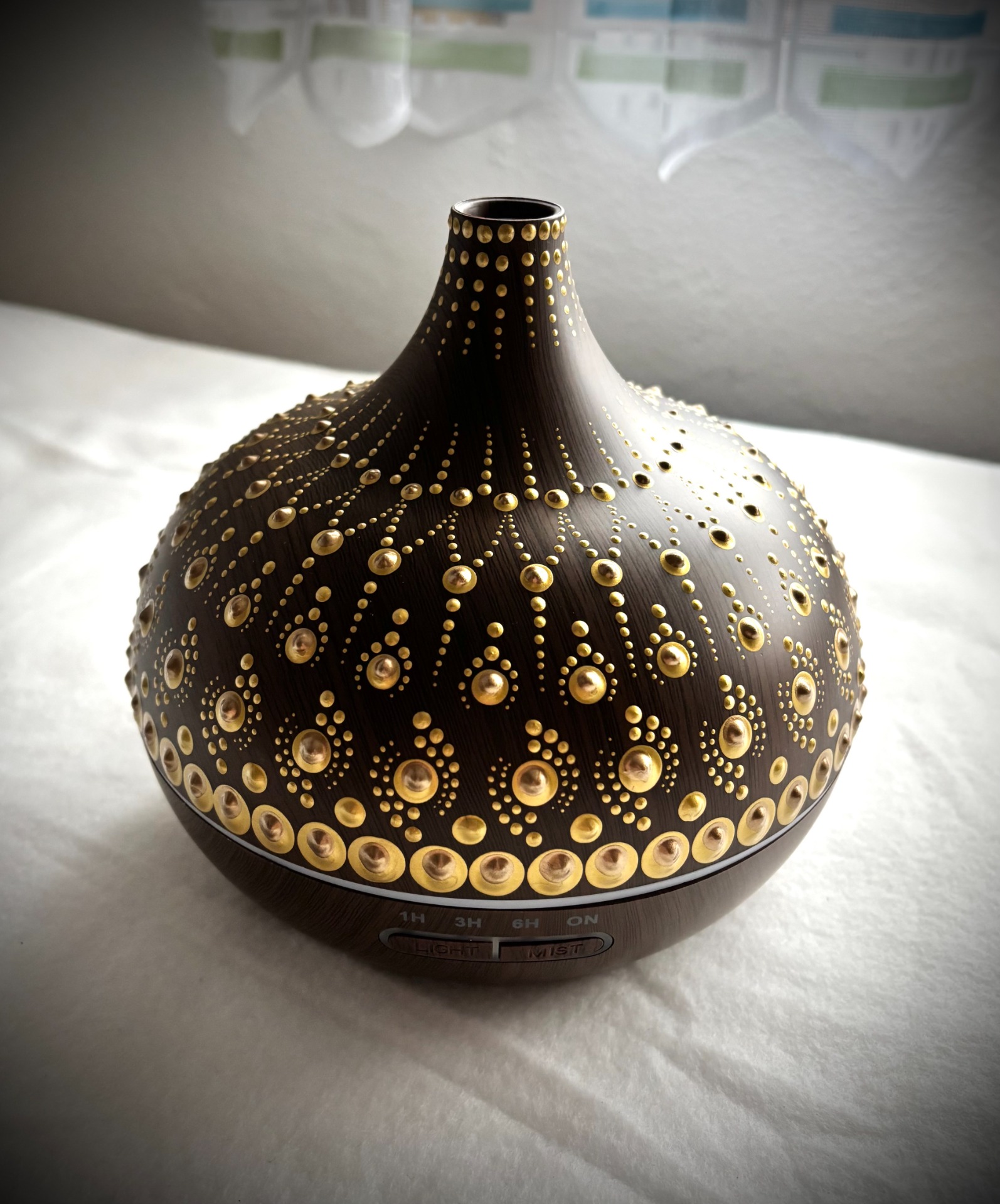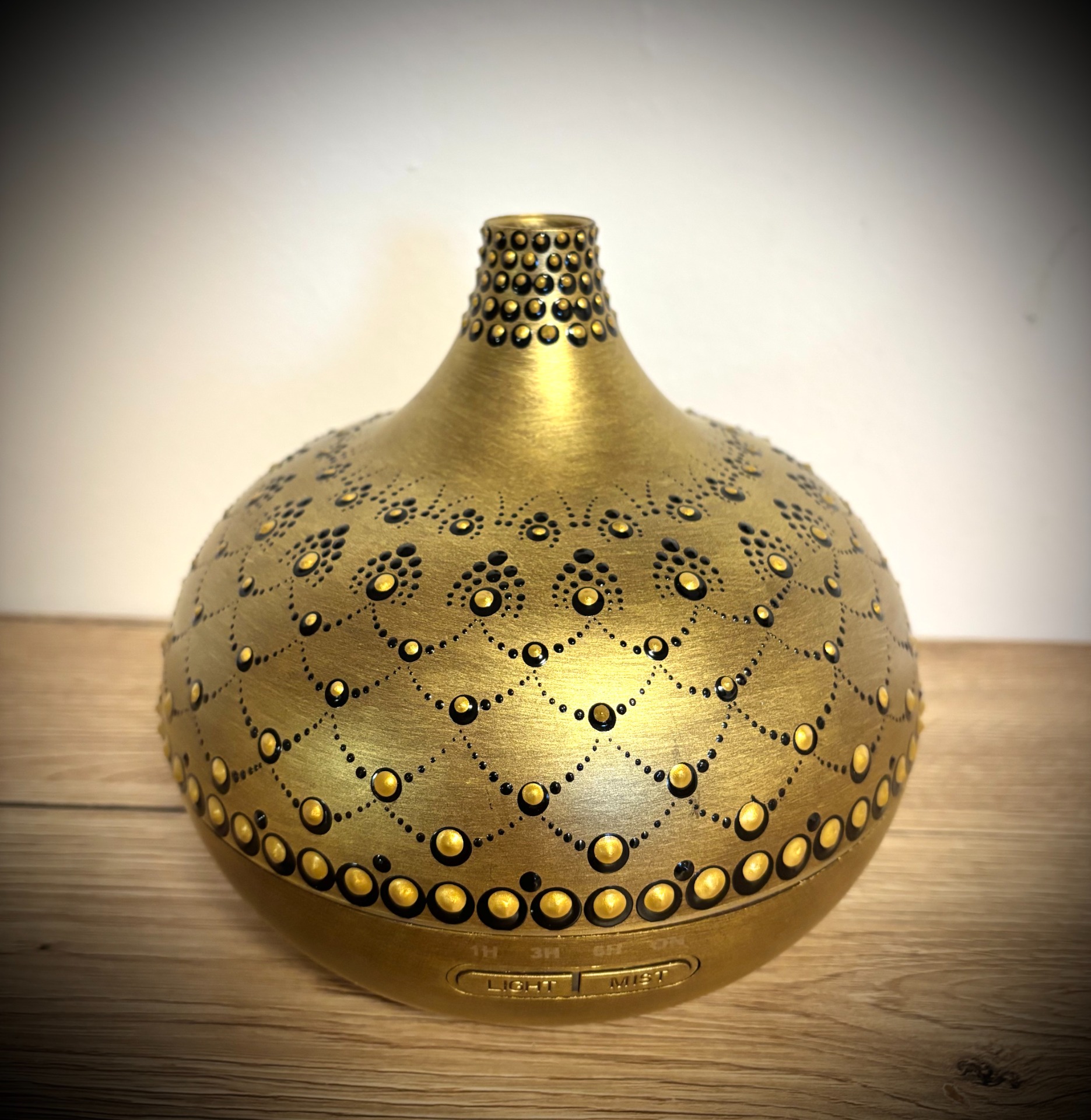 A lámpa fénye lágyan rajzolja ki a mandala mintáját a falra – így a szoba egyszerre válik meghitté, nyugtatóvá és varázslatossá.